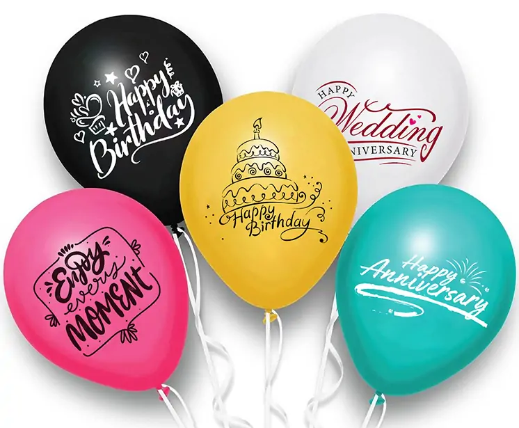 When printing patterns or text on the balloon surface, high-quality ink and high-precision printing equipment are used to ensure clear patterns, vibrant colors, and resistance to fading.