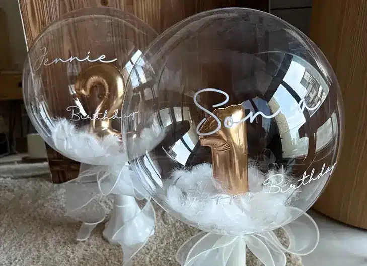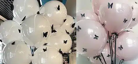 One of the most popular decoration techniques is placing another balloon inside a non-latex balloon. For example, a 24-inch non-latex balloon with an 18-inch latex balloon inside creates a layered and dimensional effect. The outer non-latex balloon can be further decorated with bows, ribbons, butterflies, or floral accents for an elegant finish.