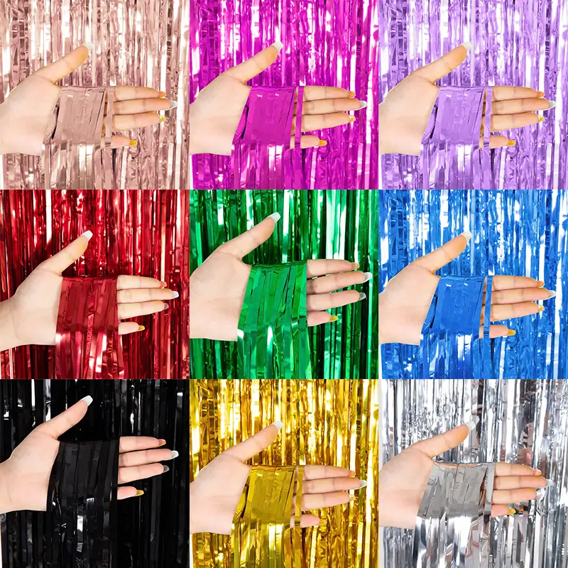 Celebration Party Decoration: Use this sparkling and gorgeous tassel metallic foil backdrop to decorate your celebration party. Hang it on a carpeted floor or wall as a backdrop, or use it as a party entrance. You can add LED lights, balloons, banners, and various photo props to this backdrop. All guests will feel your love and beauty and be impressed by your wonderful party!